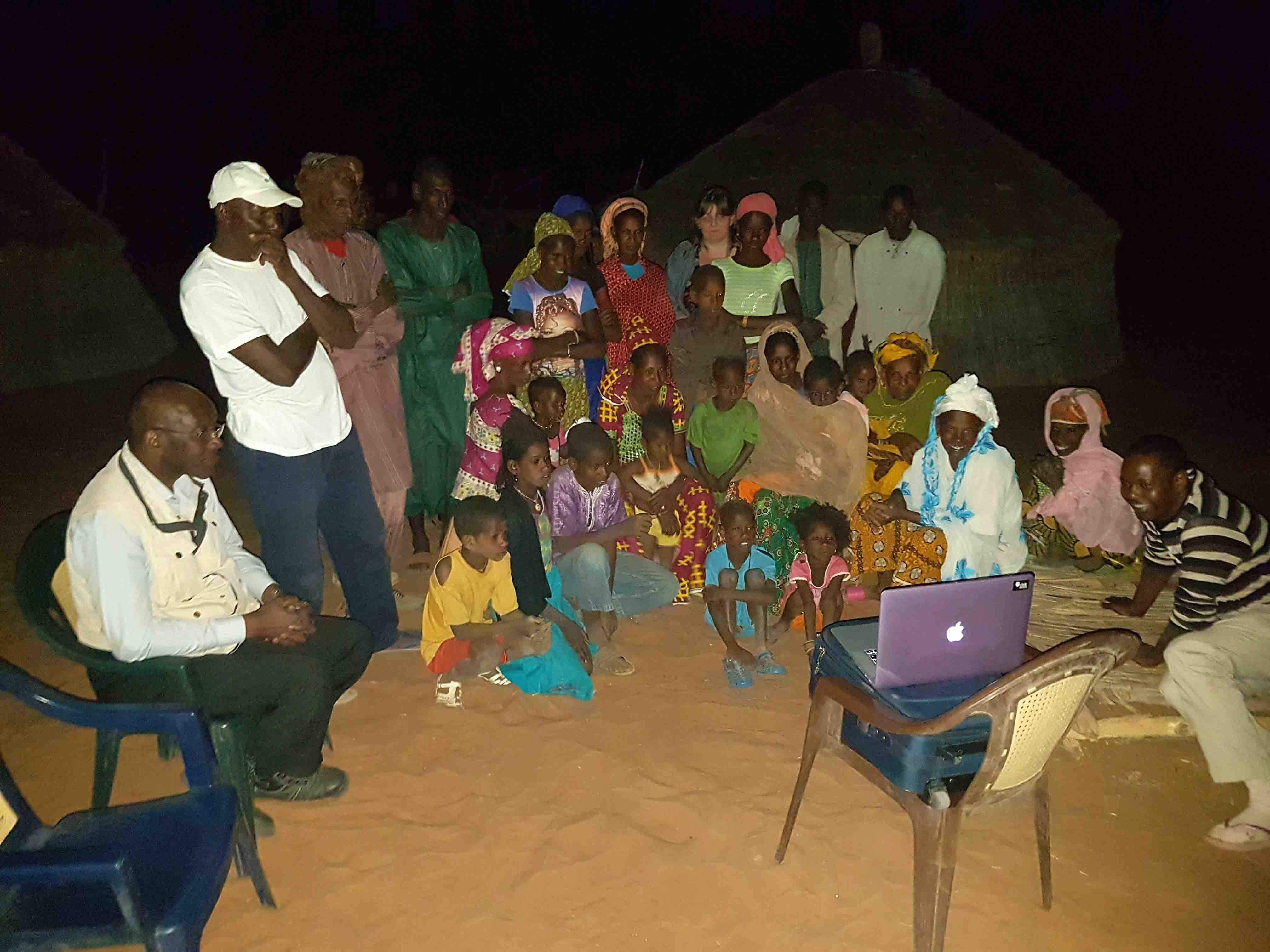 Nous montrons le film dans le village d'Alzegou au Sénégal, où nous avons interviewé l'ancien chef